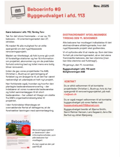 Beboerinfo - Præsentation af nyt renoveringsprojekt